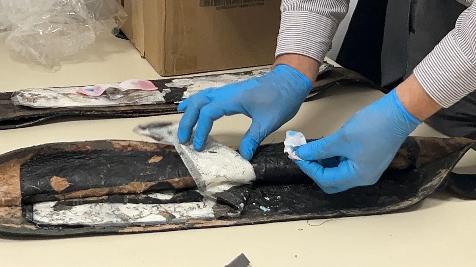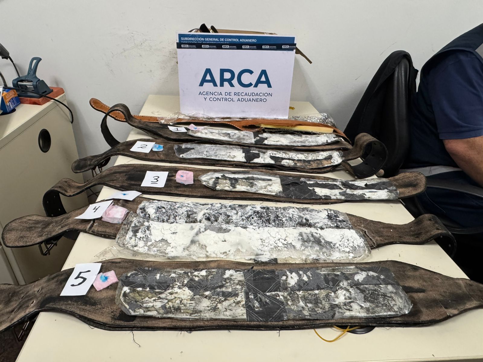 La maniobra fue detectada al momento en que un ciudadano de nacionalidad boliviana solicitó el despacho de la mercadería. Durante el control aduanero, se constató que la sustancia se encontraba oculta en cinturones de cuero, lo que permitió su inmediata incautación.